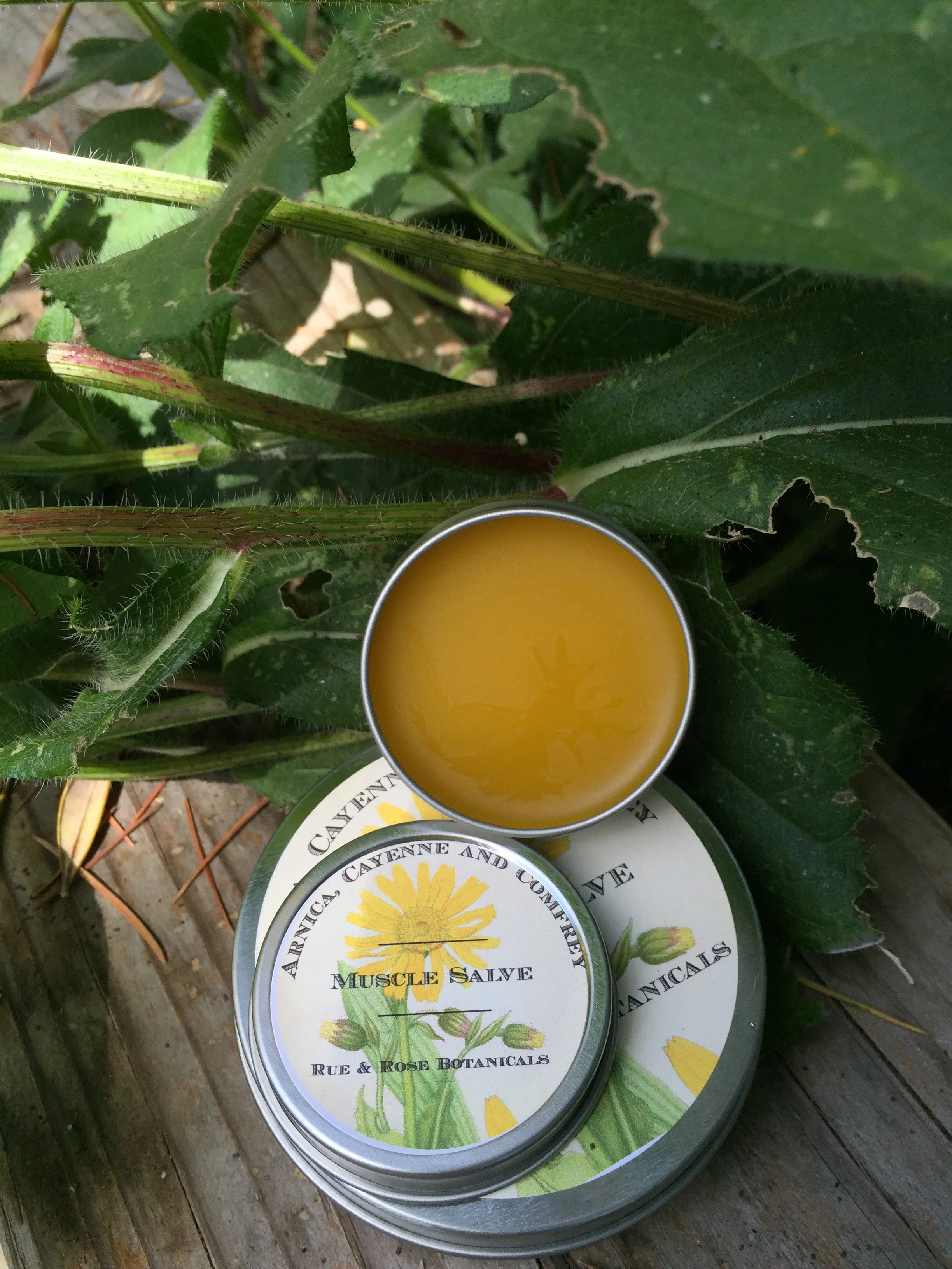 Another product I use alot this time of year is muscle salve. I use it pre workout and yard work to help me move easier and more freely. Having been made from a base or Arnica, Confrey and Cayenne, it warms up the tissues relieves minor aches and paines and allows me to continue to put in hard hours preping for winter without the painful side effects.